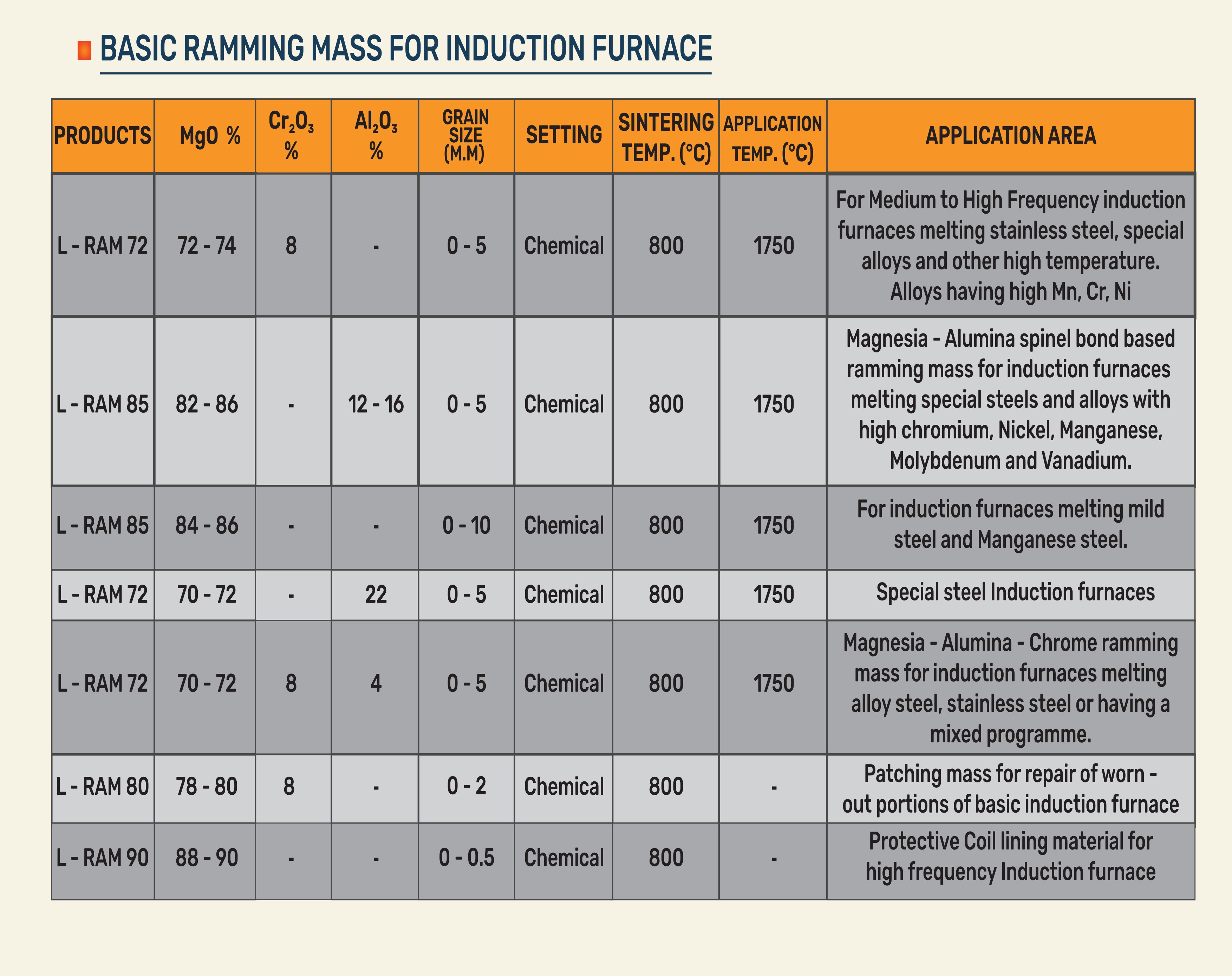 BASIC RAMMING MASS FOR INDUCTION FURNACE
