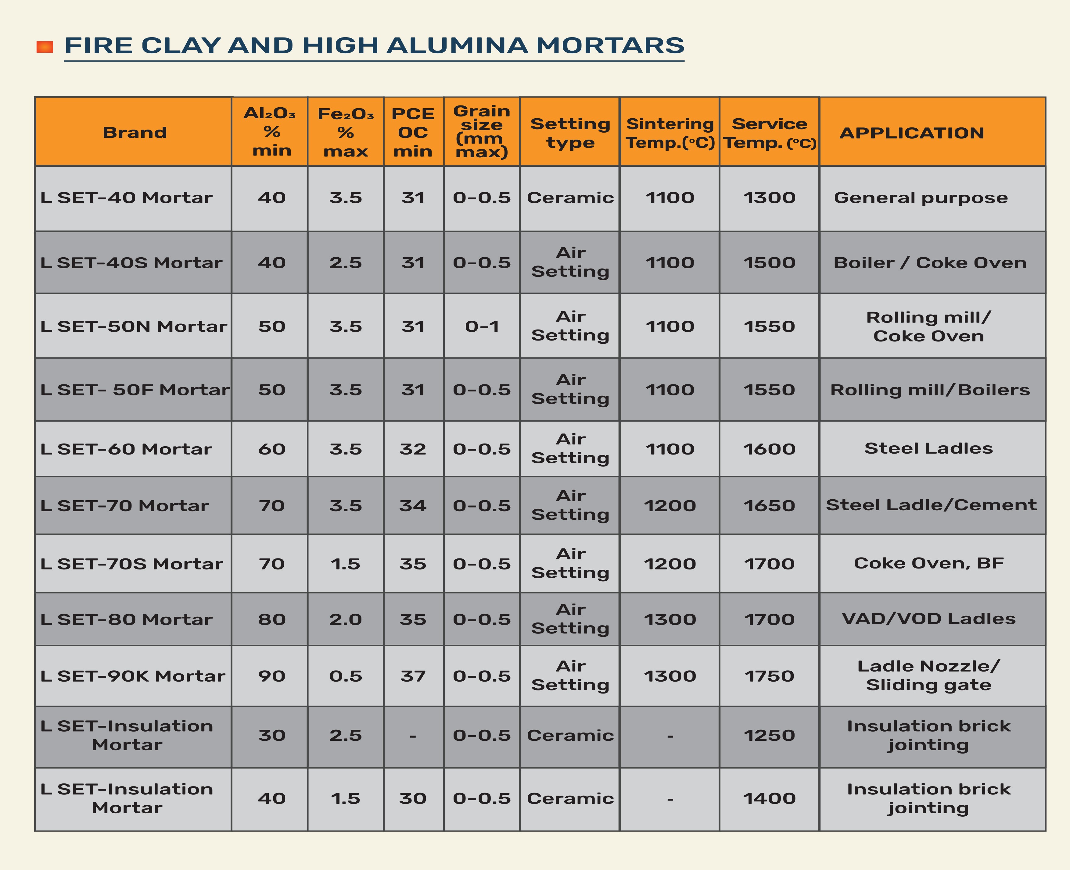 FIRE CLAY AND HIGH ALUMINA MORTARS